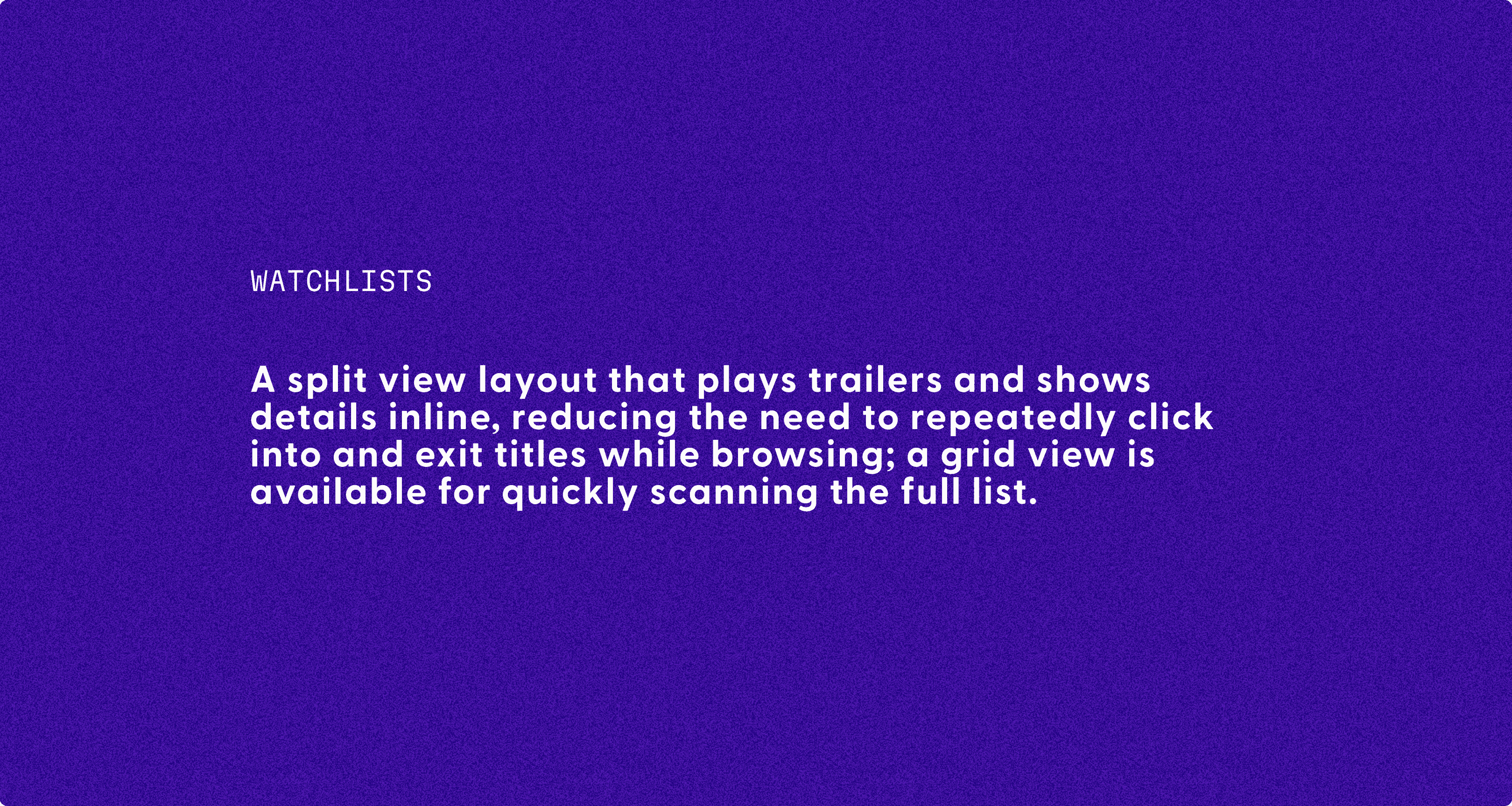 I designed an new watchlist design, reducing the need to repeatedly click into and exit titles while browsing; a grid view is available for quickly scanning the full list.