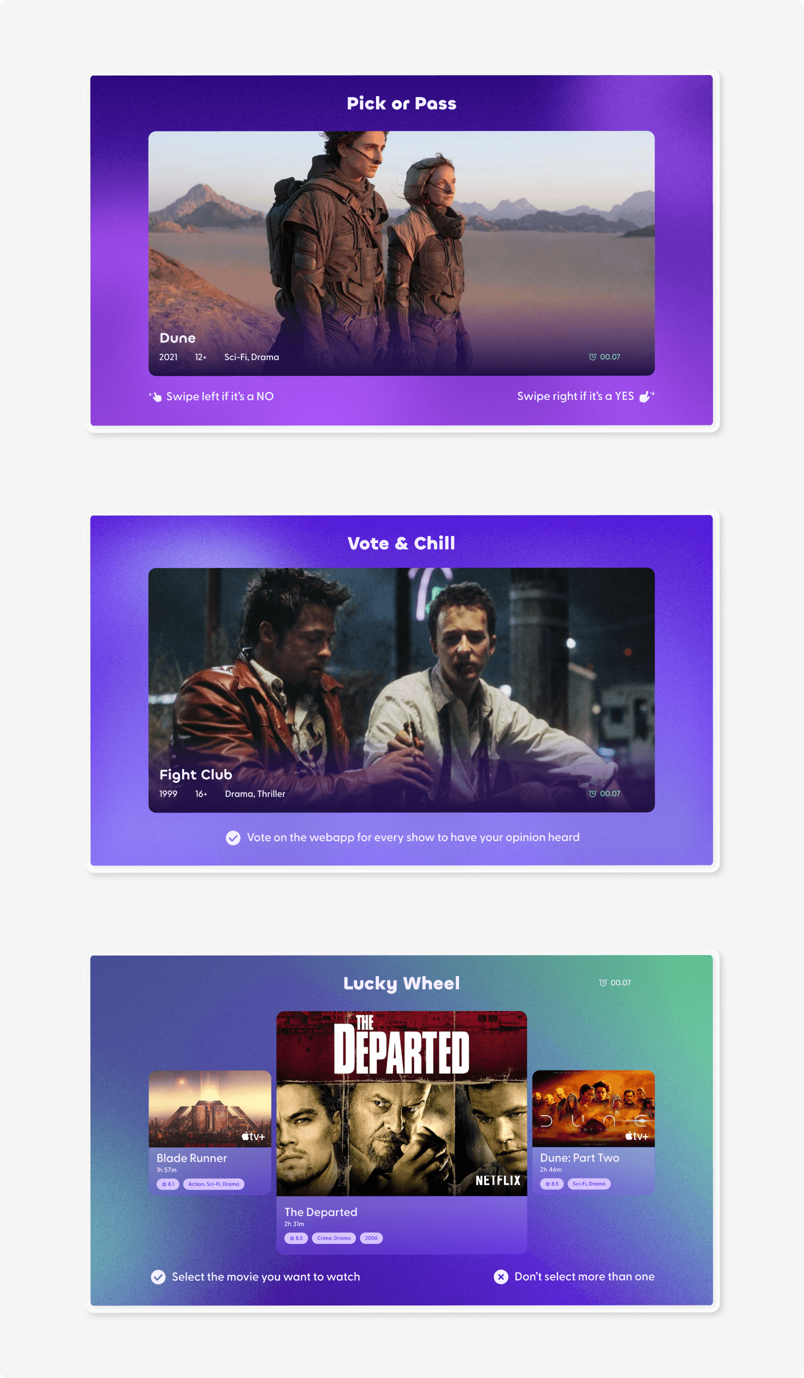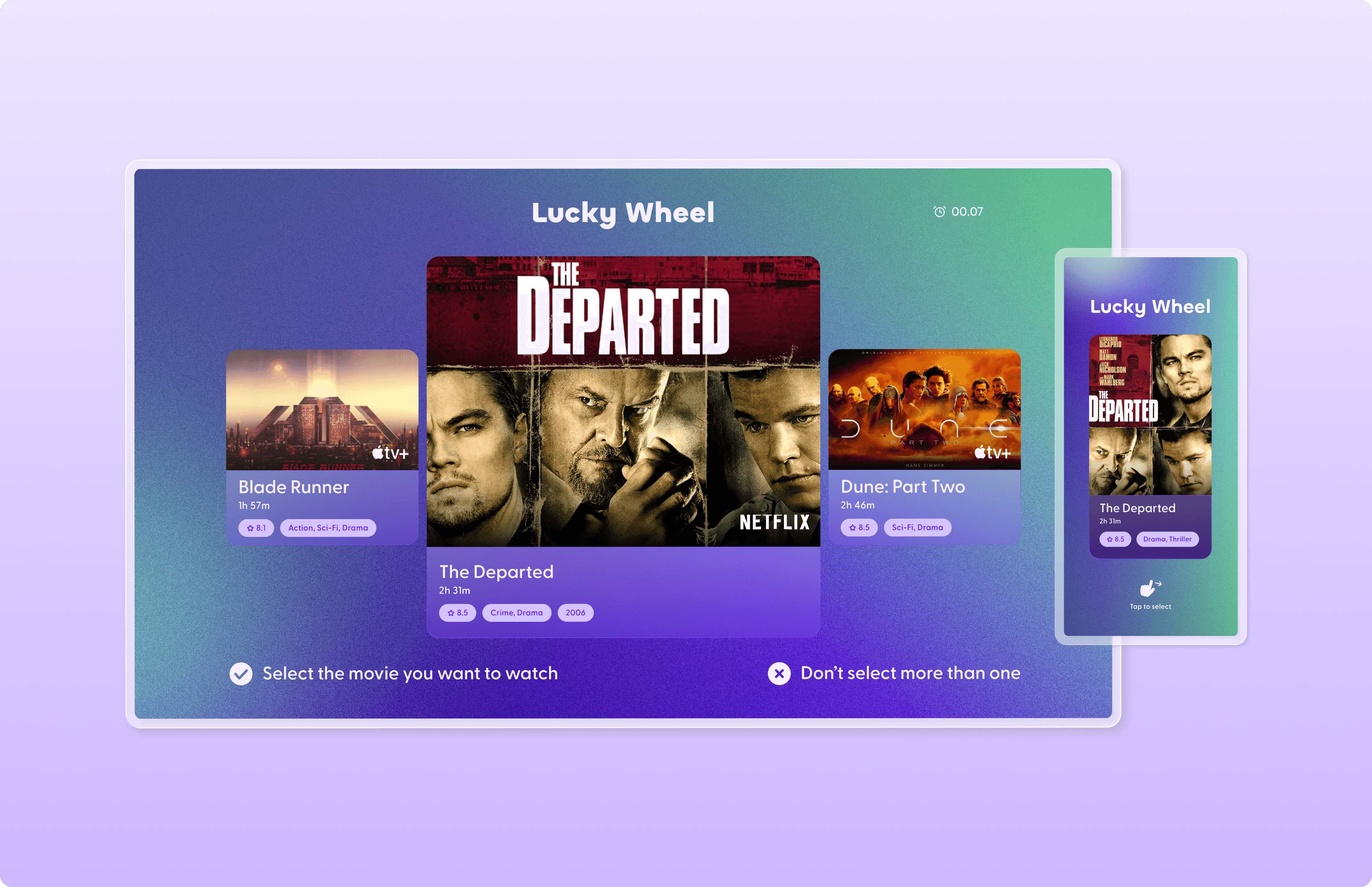 Each user selects a movie, then they spin the wheel.