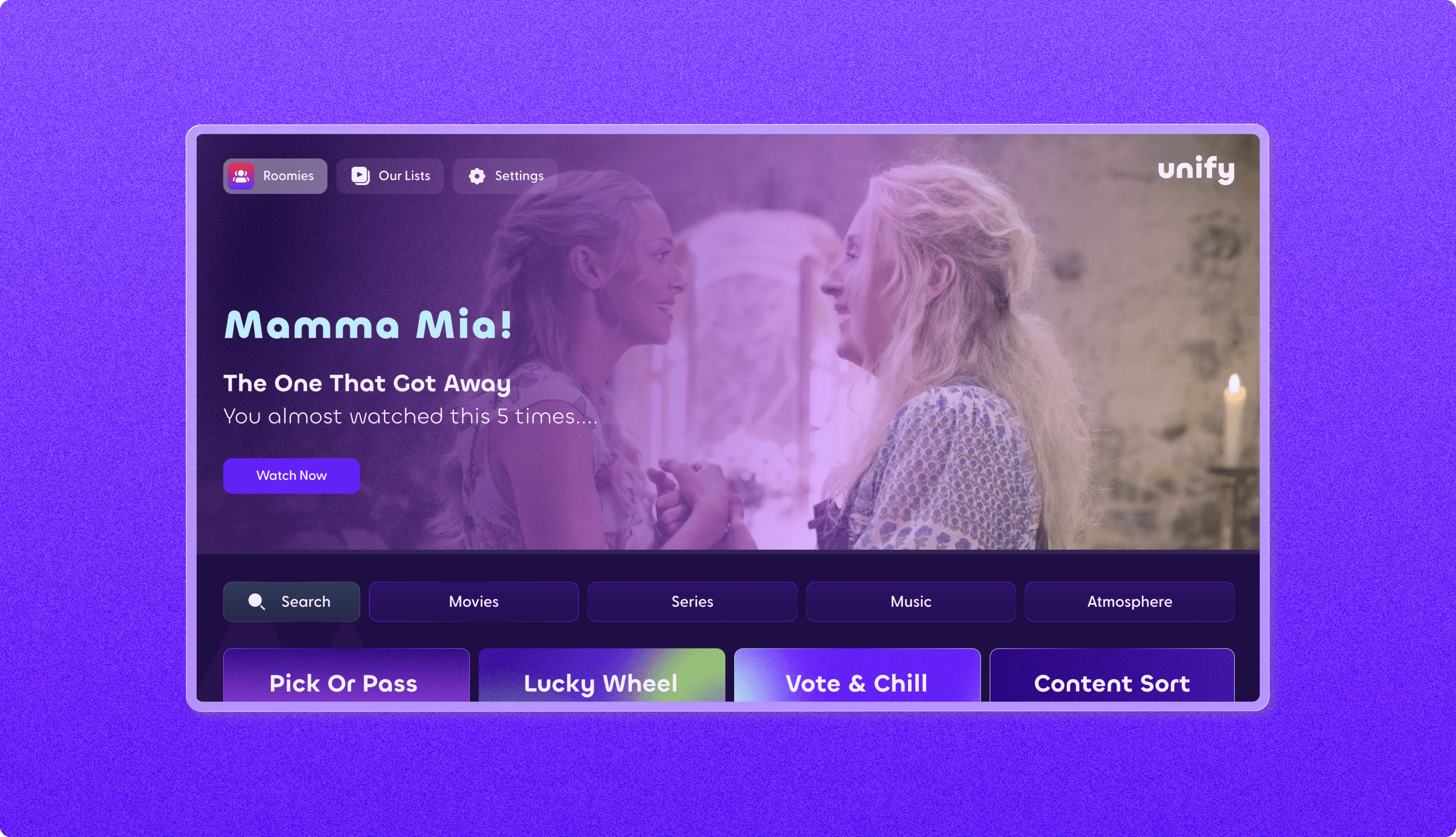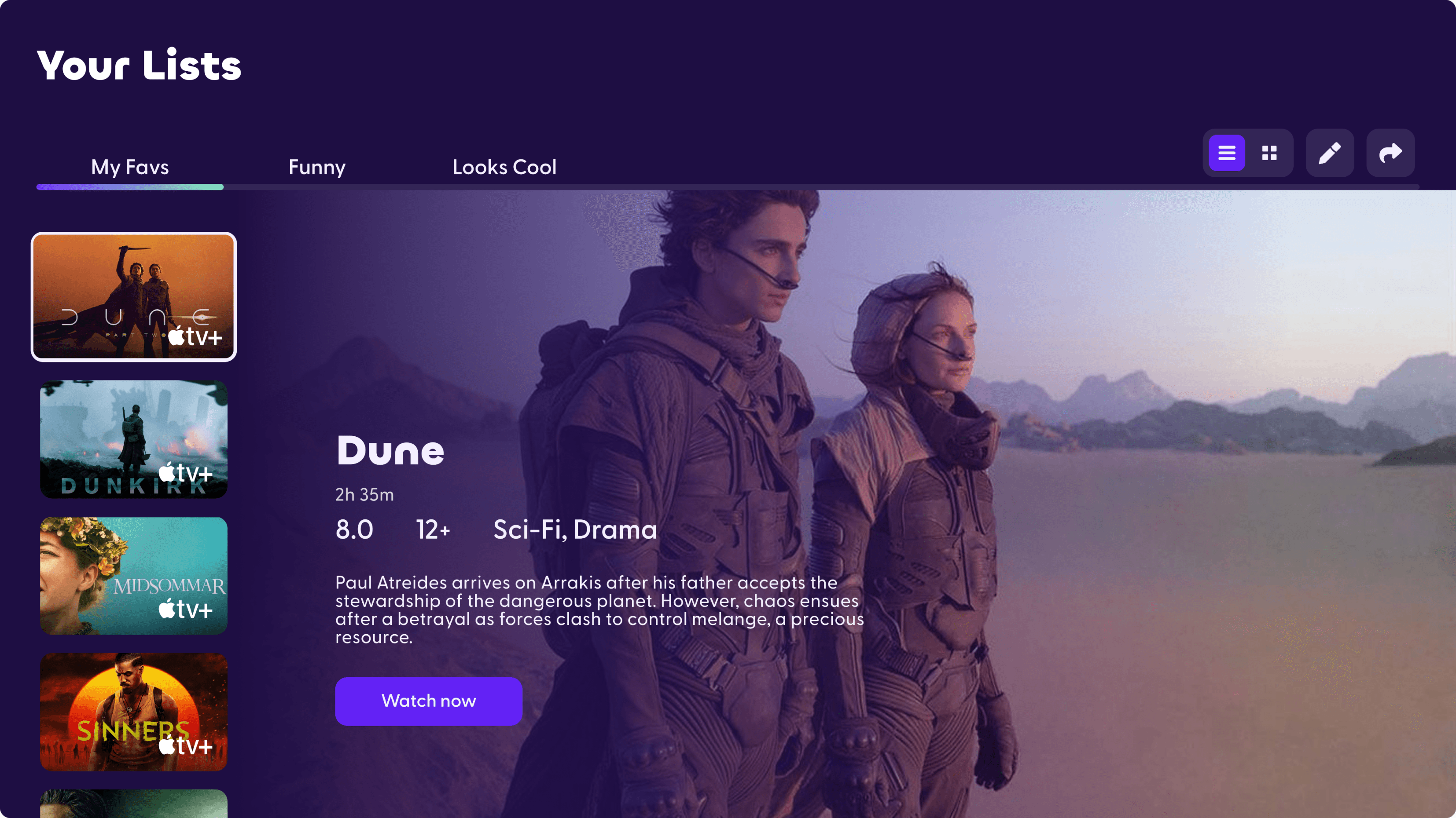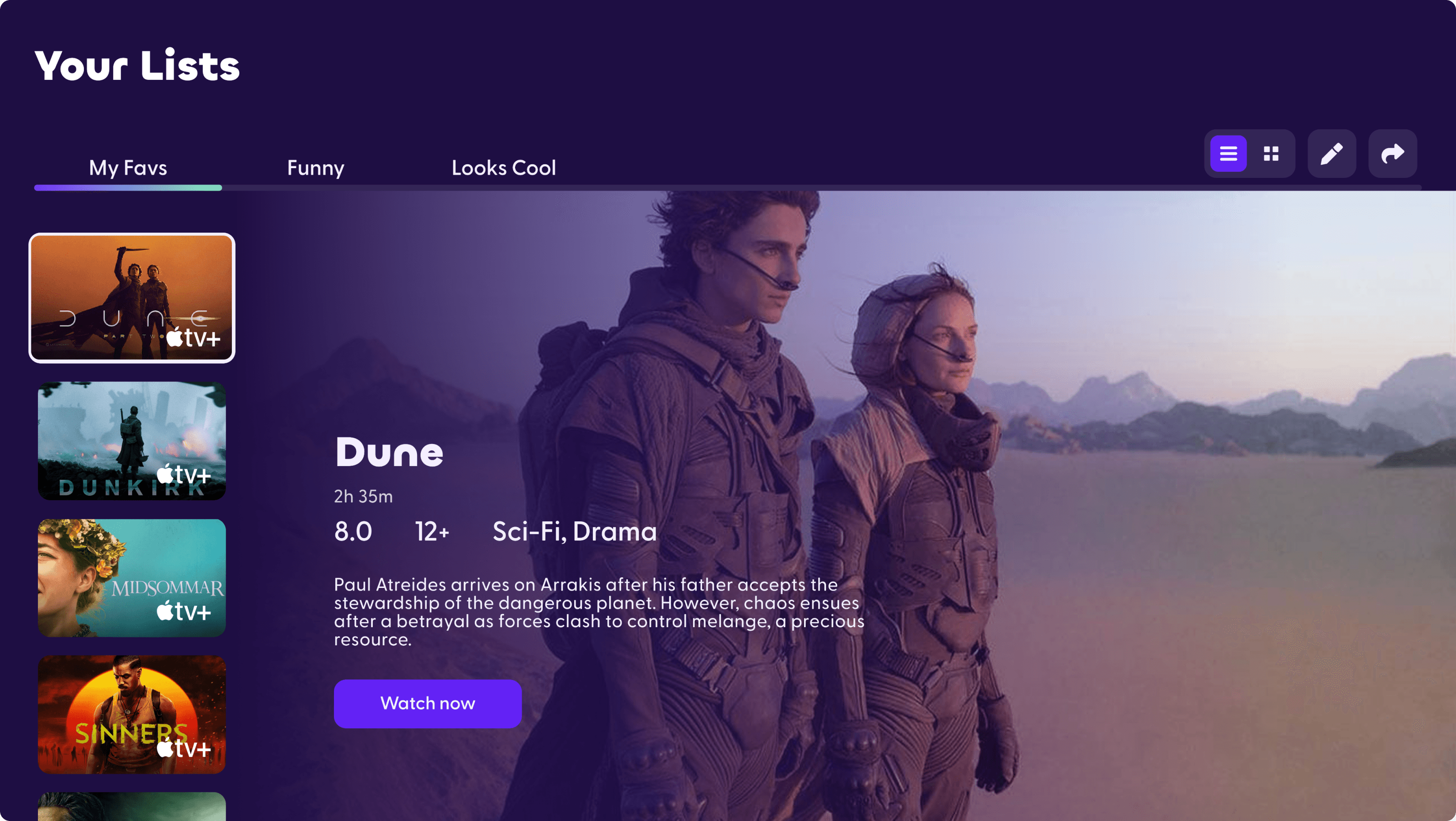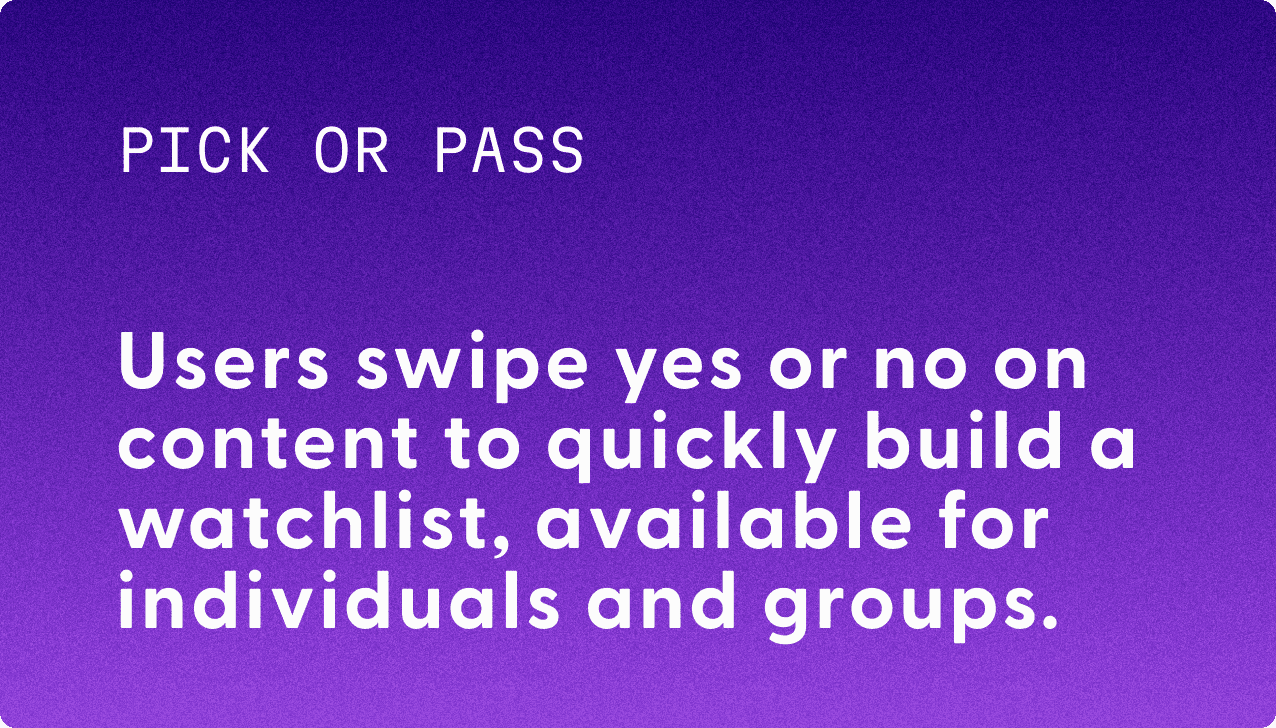 Users swipe on content to quickly build a watchlists.