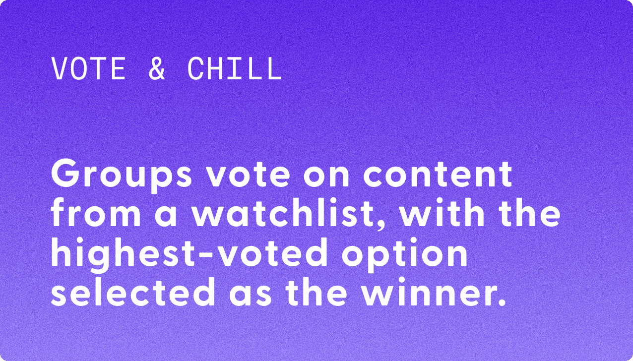 Groups vote on content from watchlists, most votes wins!